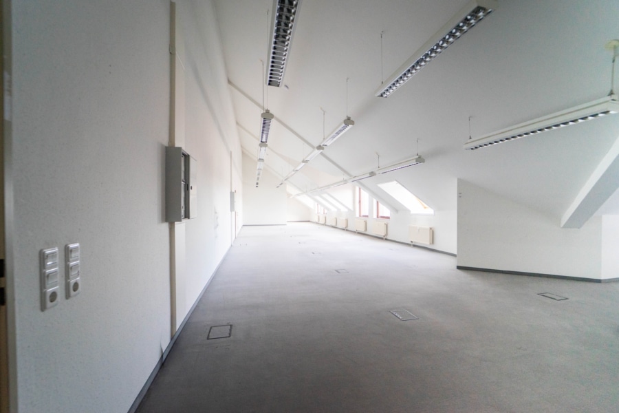 Die verfügbaren Büroabteilungen befinden sich im Dachgeschoss, das sowohl über einen Aufzug als auch über zwei Treppenhäuser komfortabel erreichbar ist. Dank der durchdachten Gebäudestruktur eignen sich die Flächen hervorragend für klassische Büronutzung, Beratungsräume, Schulungszwecke oder Praxisräume.