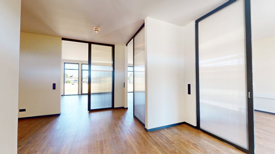 Die Fläche unterteilt sich in ca. 155 m² Bürofläche mit insgesamt sechs separaten, hellen Räumen, die sich flexibel als Einzel- oder Teambüros nutzen lassen. Ergänzt wird das Raumangebot durch einen ca. 85 m² großen Lager- bzw. Ausstellungsbereich, der auch als Showroom oder für leichten Produktionsbetrieb geeignet ist.