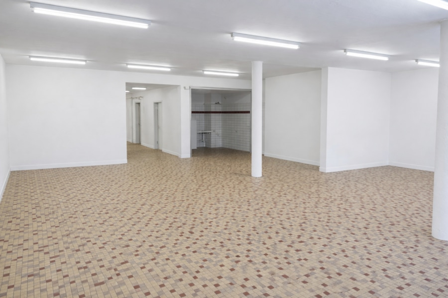 Der Eingangsbereich wird durch eine großzügige Glasfront mit zwei Schaufenstern sowie einer verglasten Tür geprägt, die für viel Tageslicht und eine attraktive Außenwirkung sorgt. Im Innenraum überzeugt die Fläche mit einem offenen, weitläufigen Grundriss und bodennahen Steckdosen – ideal für eine flexible Raumgestaltung ganz nach Ihrem Konzept.