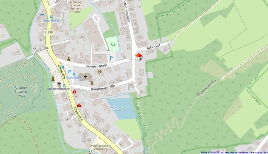 Die Johannesstraße verläuft erhöht über dem malerischen Vichtbachtal und ist Teil eines gewachsenen Wohnquartiers mit gepflegten Ein- und Zweifamilienhäusern. Spielplätze, Kita und Grundschule liegen in nur 300–600 m Entfernung. Pfarrkirche St. Johann Baptist, Apotheke, Ärzte sowie ein erhaltungswürdiger kleiner Dorfsladen mit Bäckerei erreichen Sie bequem zu Fuß. Anders als tiefergelegene Bereiche blieb das Vichtbachtal rund um die Johannesstraße bei der Flutkatastrophe 2021 vollkommen unversehrt – ein sicheres Zuhause für junge Familien.