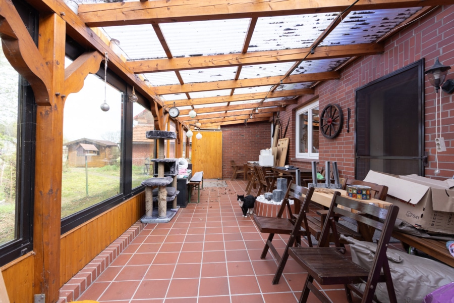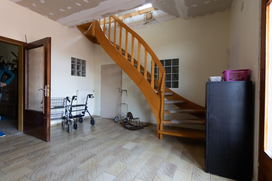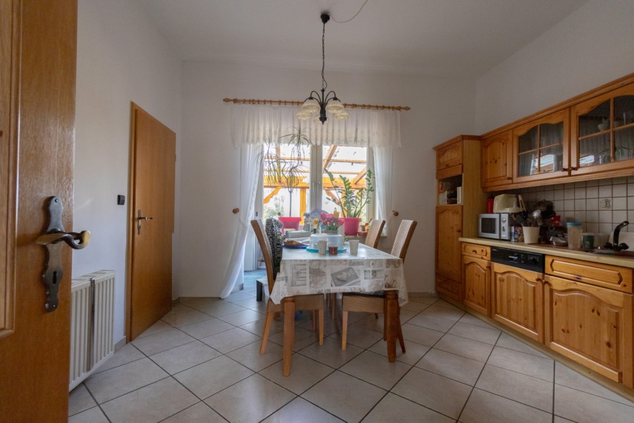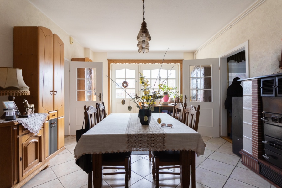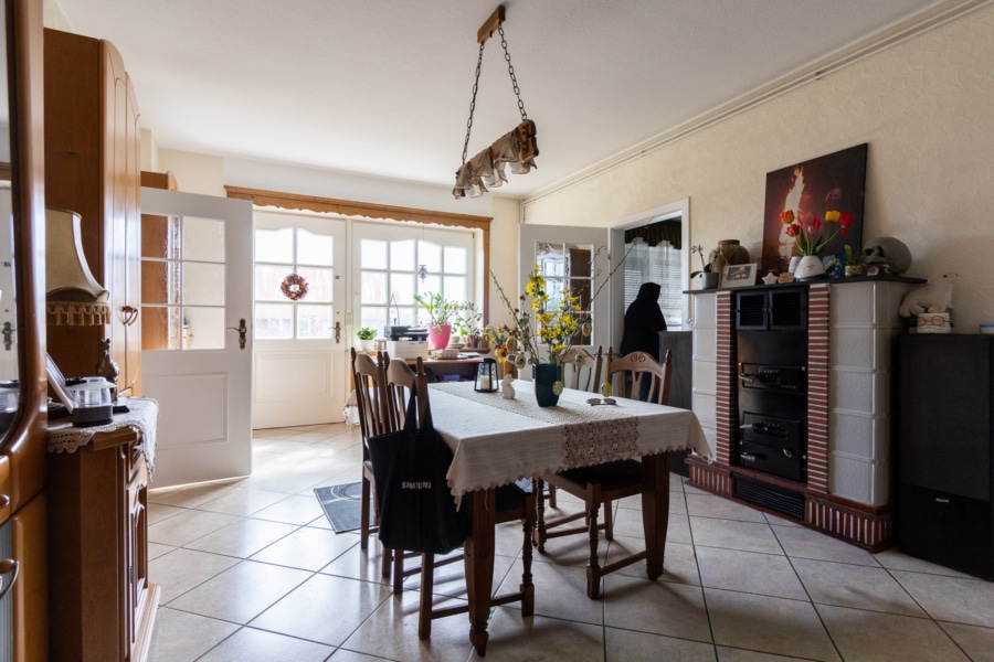 Das im Jahr 1959 in massiver Bauweise errichtete Haus verfügt über eine Wohnfläche von ca. 300 m² sowie eine zusätzliche Nutzfläche von ca. 120 m². Insgesamt stehen 10 Zimmer, darunter 6 Schlafzimmer und 3 Badezimmer, zur Verfügung. Ein Gäste-WC ergänzt das Raumangebot und sorgt für zusätzlichen Komfort im Alltag. Die vorhandene Einbauküche fügt sich funktional in das Gesamtbild ein. Eine Terrasse lädt zum Verweilen ein und bietet einen schönen Blick auf das großzügige Grundstück.