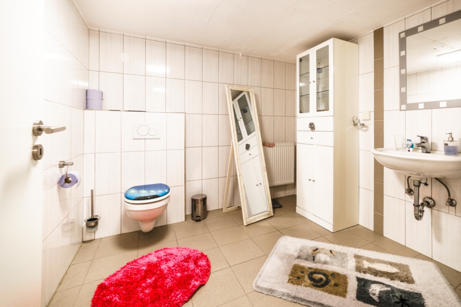 Der wohnlich ausgebaute Keller ist ein weiteres Highlight dieses Bungalows. Von der Garage aus haben Sie direkten Zugang zu diesem Bereich, der nicht nur zusätzlichen Stauraum bietet, sondern auch mit einem eigenen Badezimmer ausgestattet ist. Ideal für Hobbyräume, ein Gästezimmer oder ein separates Homeoffice – hier können Sie Ihre Ideen frei entfalten.