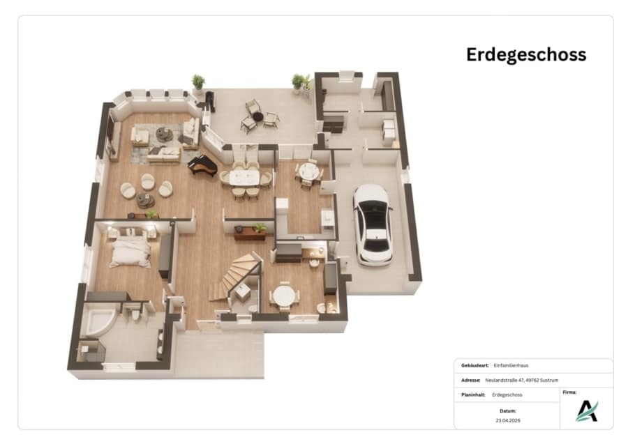 Das Einfamilienhaus befindet sich in einer ruhigen und gewachsenen Wohnlage in Neusustrum im Emsland. Die Umgebung ist geprägt von gepflegter Einfamilienhausbebauung, großzügigen Grünflächen sowie einer angenehmen und familienfreundlichen Nachbarschaft. Der Standort bietet ideale Voraussetzungen für ein naturnahes und zugleich entspanntes Wohnen.