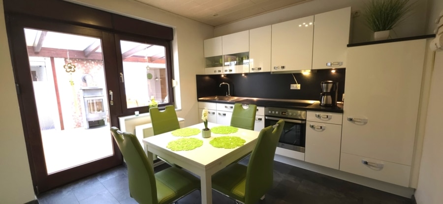 Im Erdgeschoss befinden sich ein großzügiges Wohnzimmer, die Küche inklusive Einbauküche sowie ein modernisiertes Badezimmer (2008).