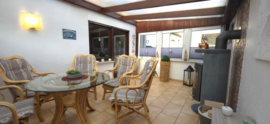 2022 erfolgte ein neuer Außenanstrich. Der 2013 errichtete Wintergarten erweitert den Wohnraum auf angenehme Weise und schafft einen lichtdurchfluteten Rückzugsort mit Blick in den Garten.