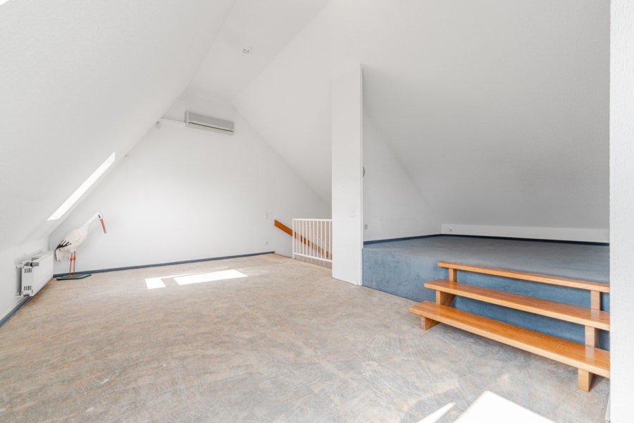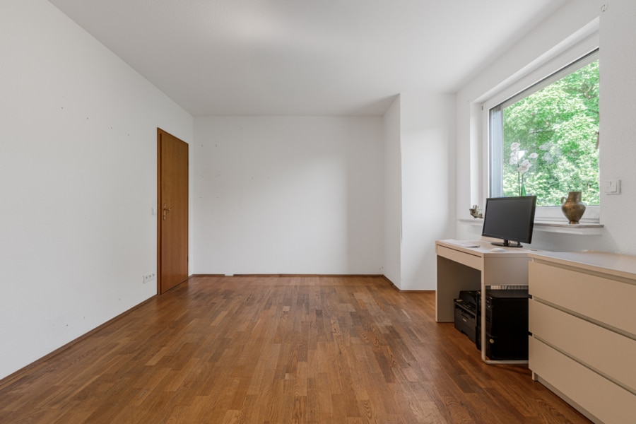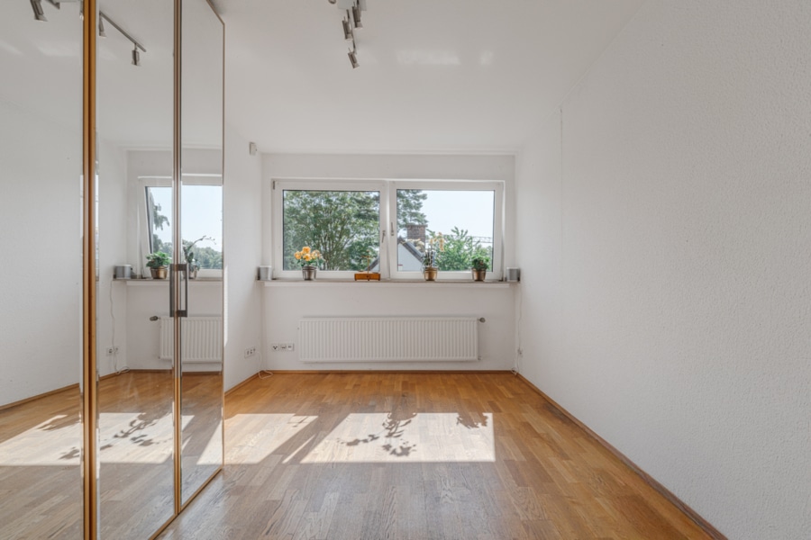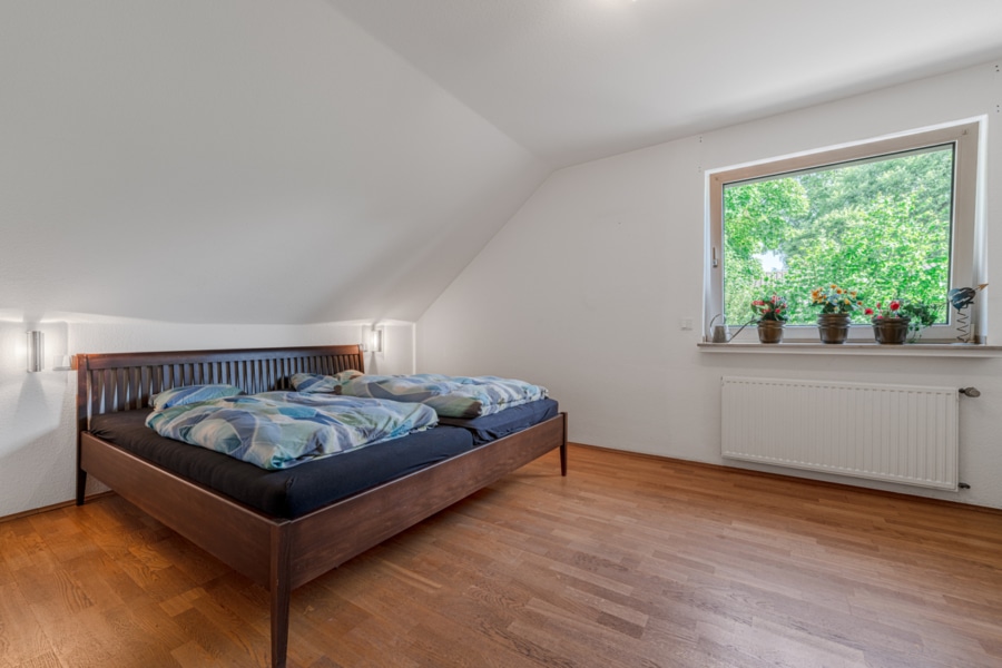Im Obergeschoss erwarten Sie bis zu drei Schlafzimmer sowie ein Tageslichtbad mit Wanne und Dusche. Der Echtholzboden verleiht dem gesamten Obergeschoss eine warme Wohnatmosphäre. Das ausgebaute Dachstudio punktet mit enormer Deckenhöhe und einem unverbaubaren Ausblick auf den Baldeneysee – ein echtes Highlight!
