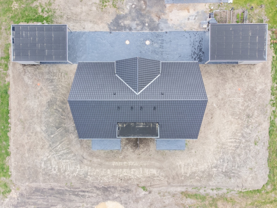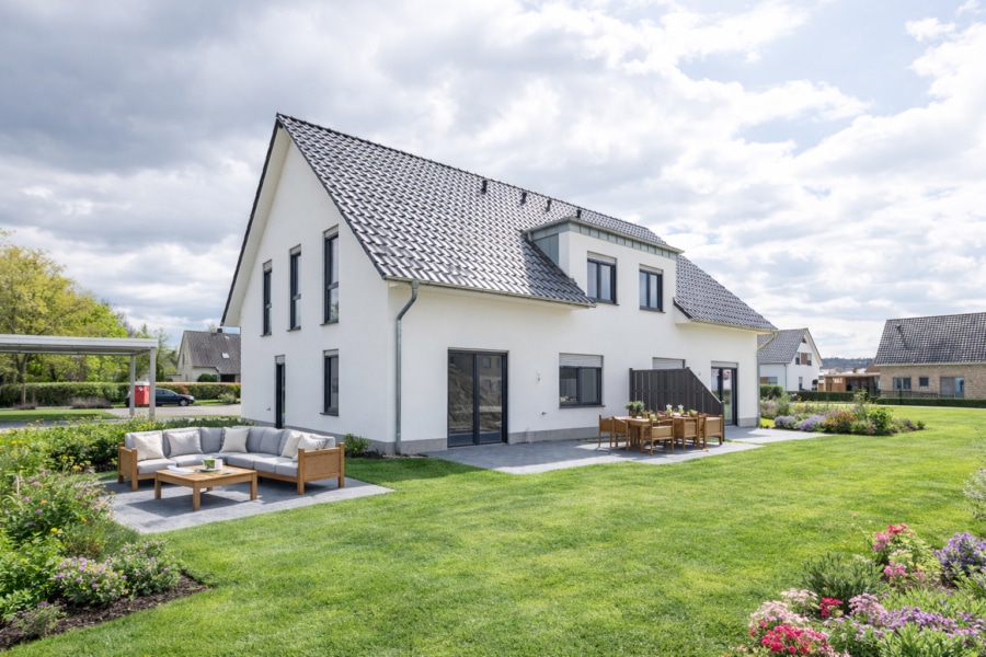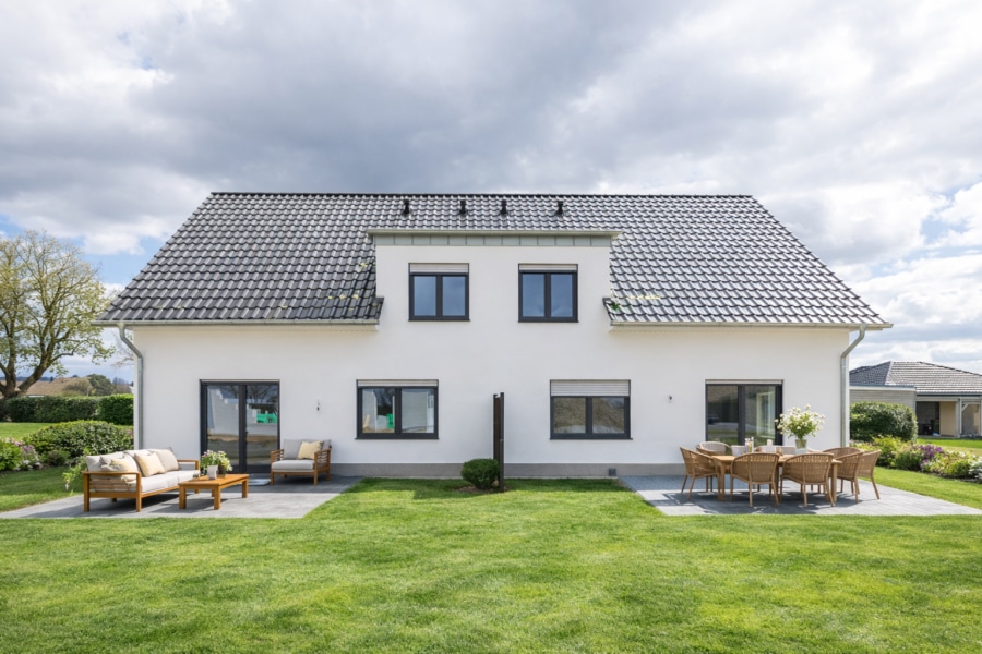 Auch die Rasenfläche wird bereits angelegt, sodass der Außenbereich sofort nutzbar ist.