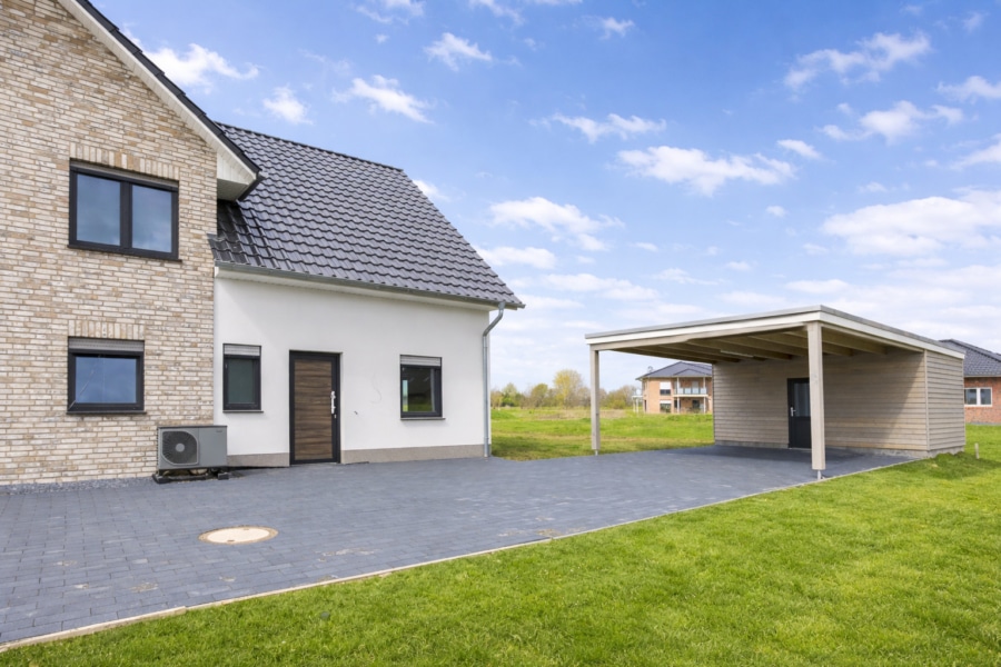 Ein Carport mit integriertem Geräteraum sowie ein zusätzlicher Stellplatz komplettieren dieses attraktive Angebot.