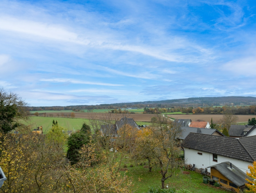 Im Obergeschoss warten drei behagliche Zimmer, ein Balkon mit Blick in die Ferne, dazu Keller und Dachgeschoss mit wertvollem Stauraum. Drei Stellplätze und ein überdachter Fahrradplatz mit Stromanschluss ergänzen das Angebot.