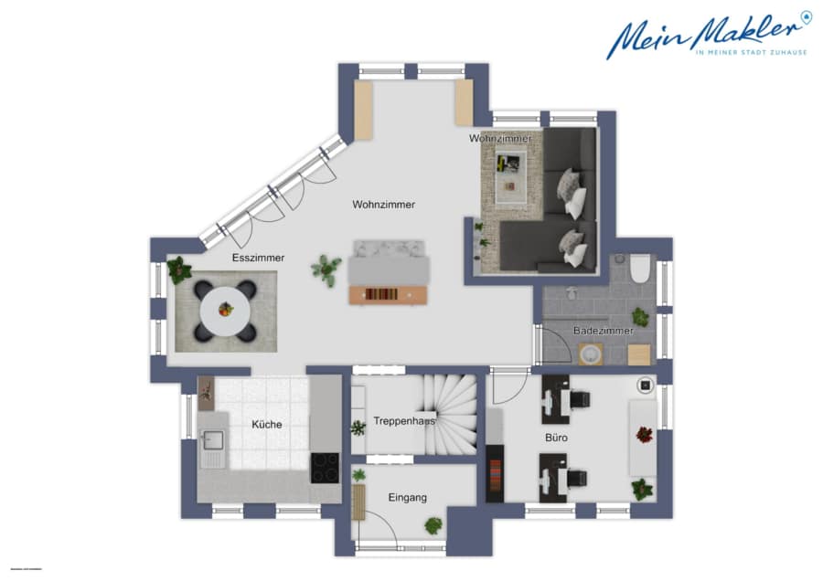 Ein zusätzliches Büro oder Kinderzimmer rundet das Erdgeschoss ab und bietet Flexibilität für Homeoffice, Gäste oder Nachwuchs.