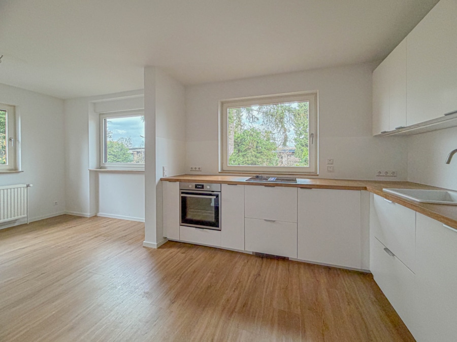 Die Ausstattung entspricht gehobenen Wohnansprüchen: strapazierfähige Designböden in Eichenoptik, glatte Feinputzwände, elektrische Jalousien in allen Räumen sowie moderne Bäder und hochwertige Keramiken schaffen ein zeitloses, pflegeleichtes Ambiente. Die neue Einbauküche (2024) bietet modernste Technik, darunter Induktionskochfeld mit integriertem Dunstabzug, Backofen, Kühl-Gefrierkombination und Geschirrspüler.