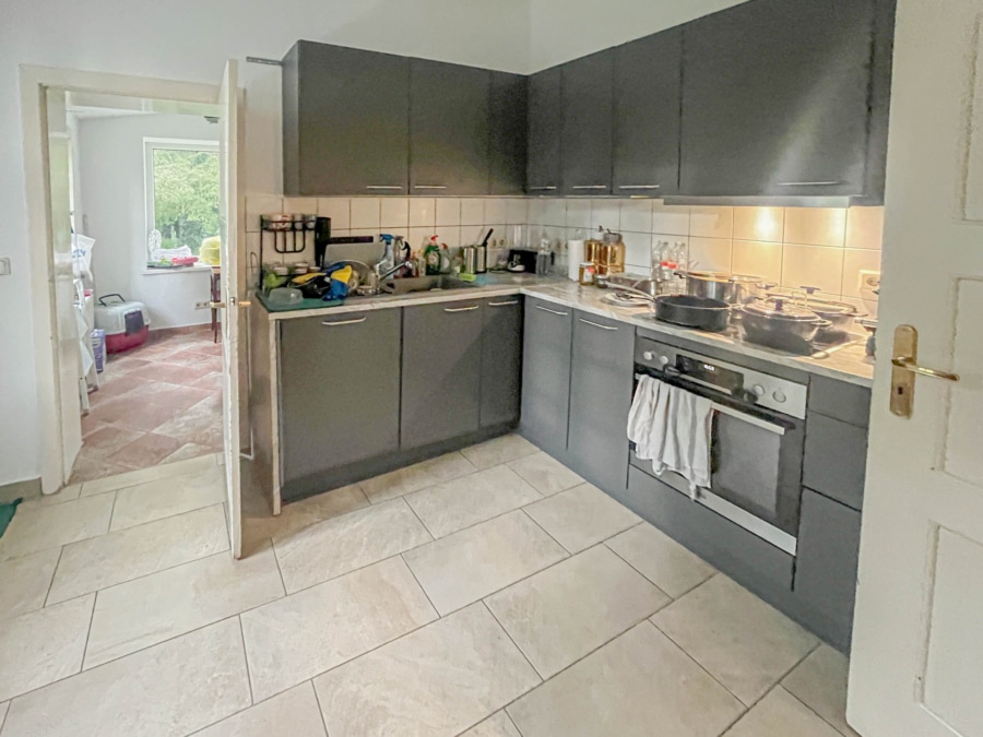 Drei Schlafzimmer, ein Wohnzimmer, ein Esszimmer, sowie zwei Bäder sorgen für Flexibilität im Alltag. Eine gepflegte Einbauküche ist bereits vorhanden und lässt keine Wünsche offen. Die Räume sind hell, großzügig geschnitten und in einem guten Zustand. Der liebevoll angelegte Garten mit weitläufiger Rasenfläche bietet zahlreiche Möglichkeiten zur Entspannung und Entfaltung im Grünen.