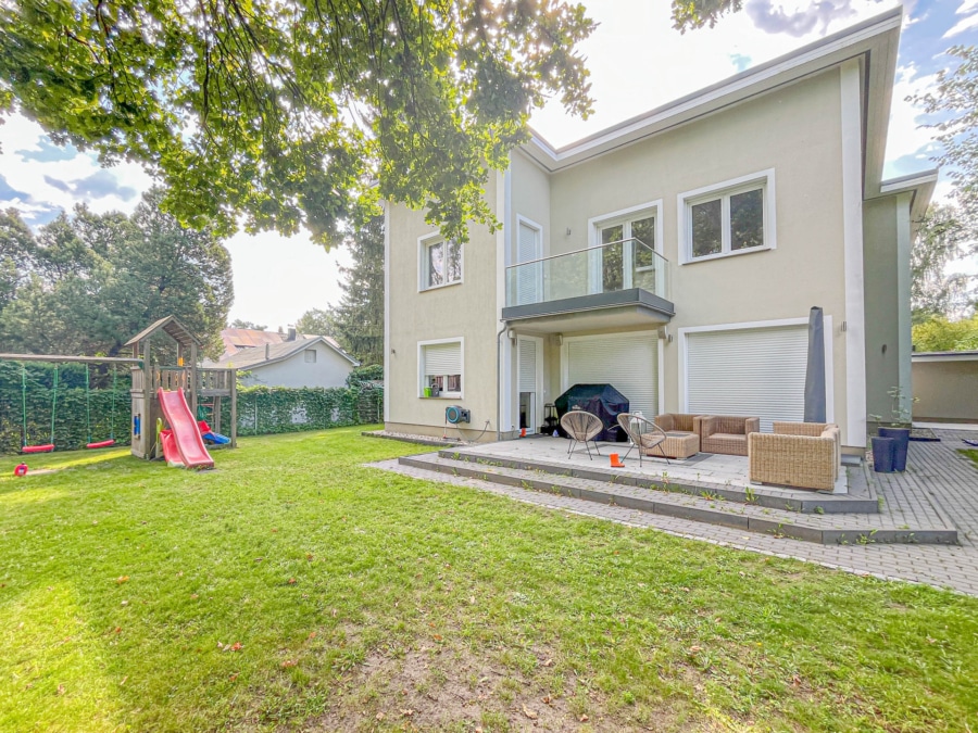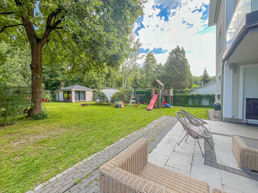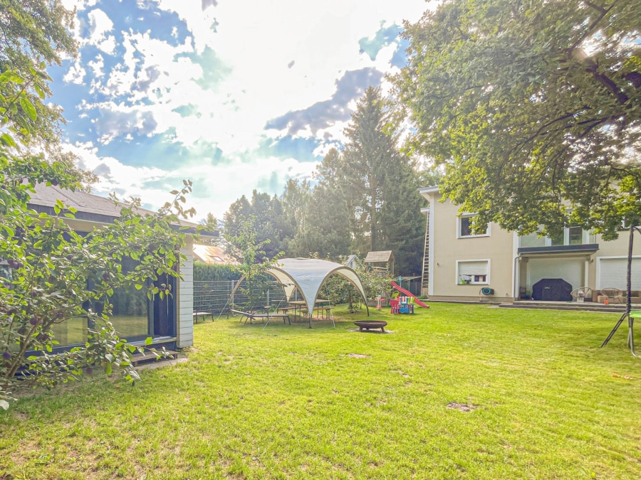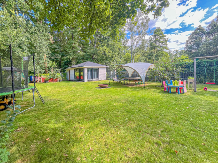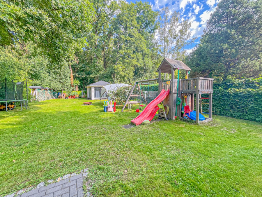 Der Garten ist ein wahres Paradies für Kinder und Erholungssuchende gleichermaßen. Ein eigener Spielplatz, großzügige Terrassenflächen, gemütliche Grillplätze und viel Platz zum Toben, Feiern oder einfach zum Entspannen machen ihn zu einem besonderen Highlight der Immobilie.