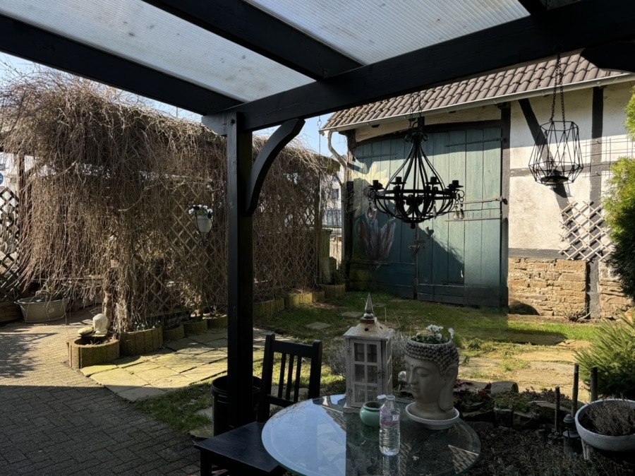 Das ca. 274 m² große Grundstück bietet neben dem Wohnhaus ein weiteres großzügiges Gebäude, das als Garage mit Platz für ein Fahrzeug dient. Darüber hinaus bietet dieses Gebäude viel zusätzlichen Raum für Hobbies oder als Abstellfläche. Trotz der optimalen Nutzung des Grundstücks bleibt auch etwas Grünfläche erhalten. Zudem gibt es einen überdachten Bereich, der sich ideal als geschützter Platz für einen Grill oder Gartenmöbel eignet. Durch seine Größe benötigt das Grundstück nicht viel Pflege, sodass mehr Zeit für Familie und Hobby bleibt.