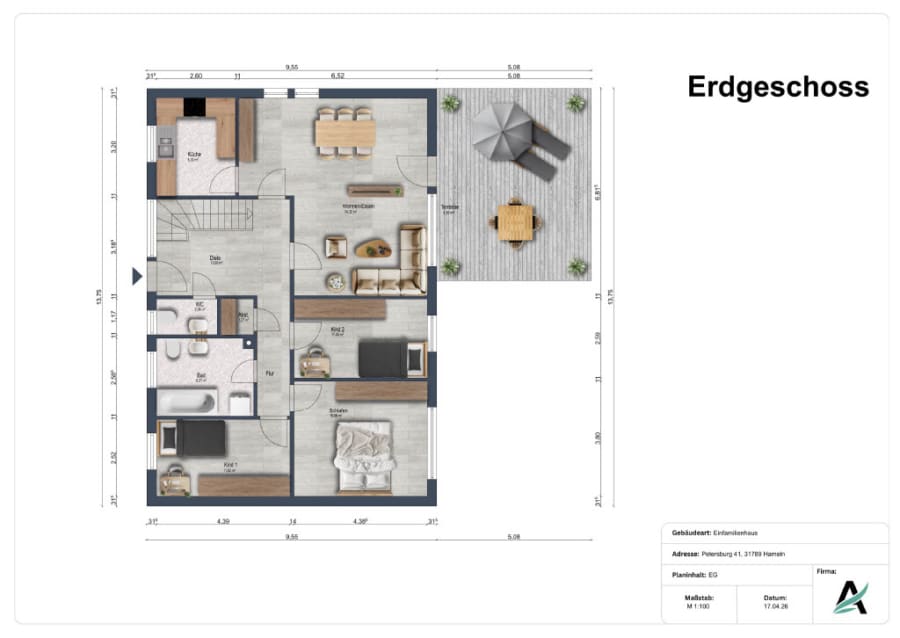 Die Immobilie verfügt über insgesamt 4 Zimmer, darunter 3 Schlafzimmer, sowie ein Badezimmer. Eine Einbauküche ist bereits vorhanden und fügt sich funktional in das Wohnkonzept ein. Der direkte Zugang zur Terrasse schafft eine attraktive Verbindung zwischen Innen- und Außenbereich und lädt zu entspannten Stunden im Freien ein – ob beim Frühstück, beim Grillabend oder einfach zum Abschalten im eigenen Garten.