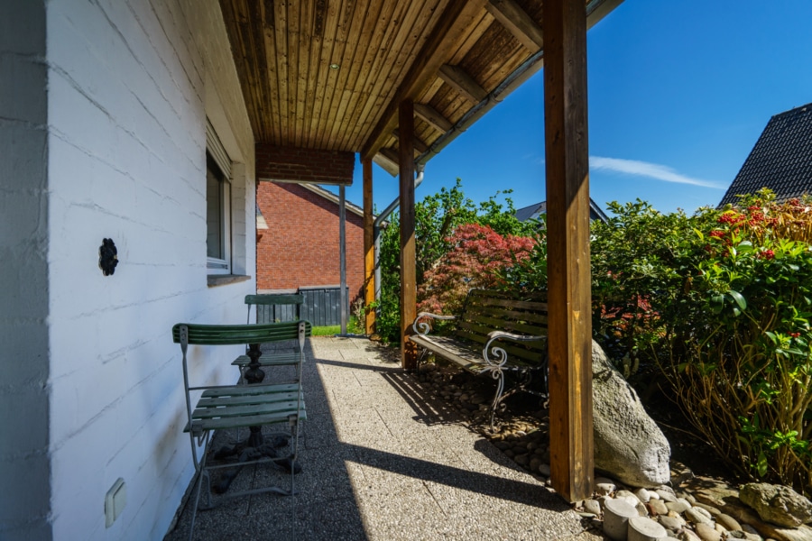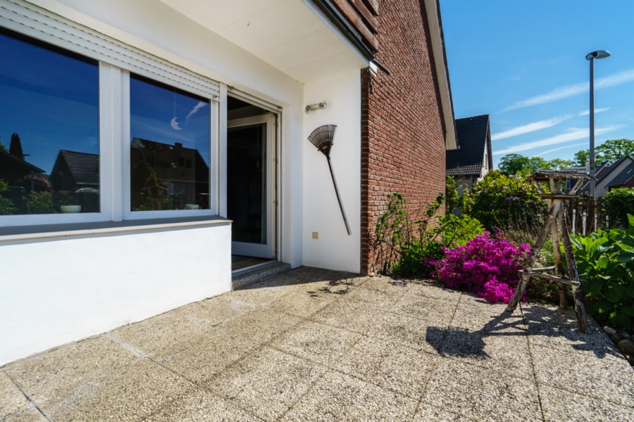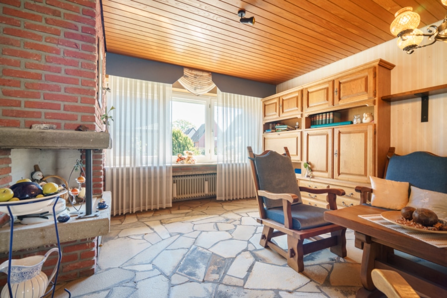 Ein besonderes Highlight des Hauses ist die Terrasse, die vor etwa 25 Jahren erneuert wurde. Sie bietet einen angenehmen Platz zum Entspannen im Freien und blickt auf den gepflegten Garten. Der vorhandene Kamin verleiht dem Wohnbereich eine behagliche Note, ist jedoch derzeit stillgelegt und könnte auf Wunsch reaktiviert werden.
