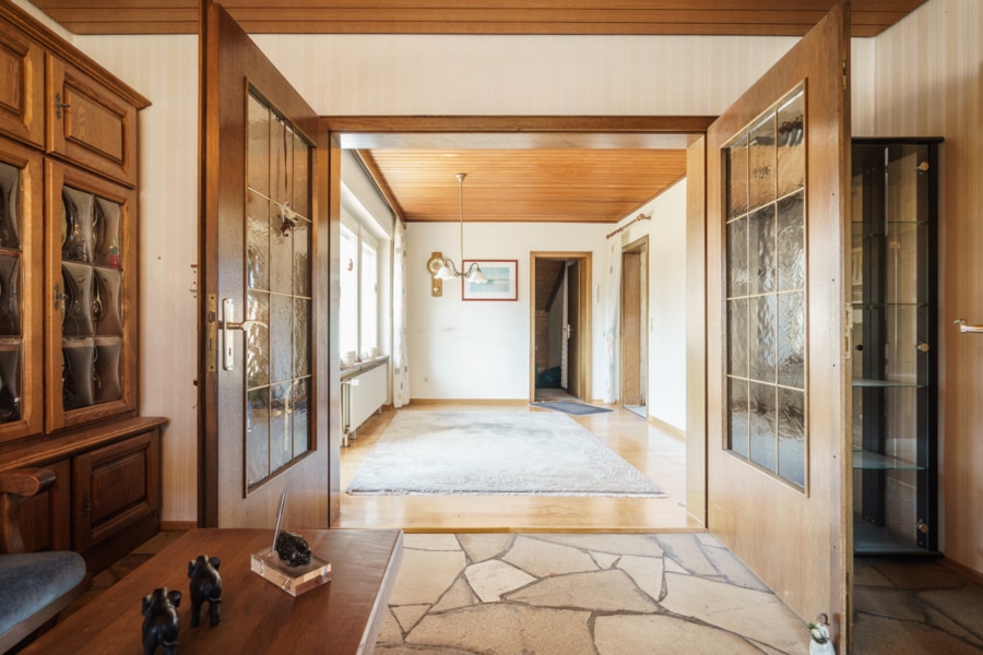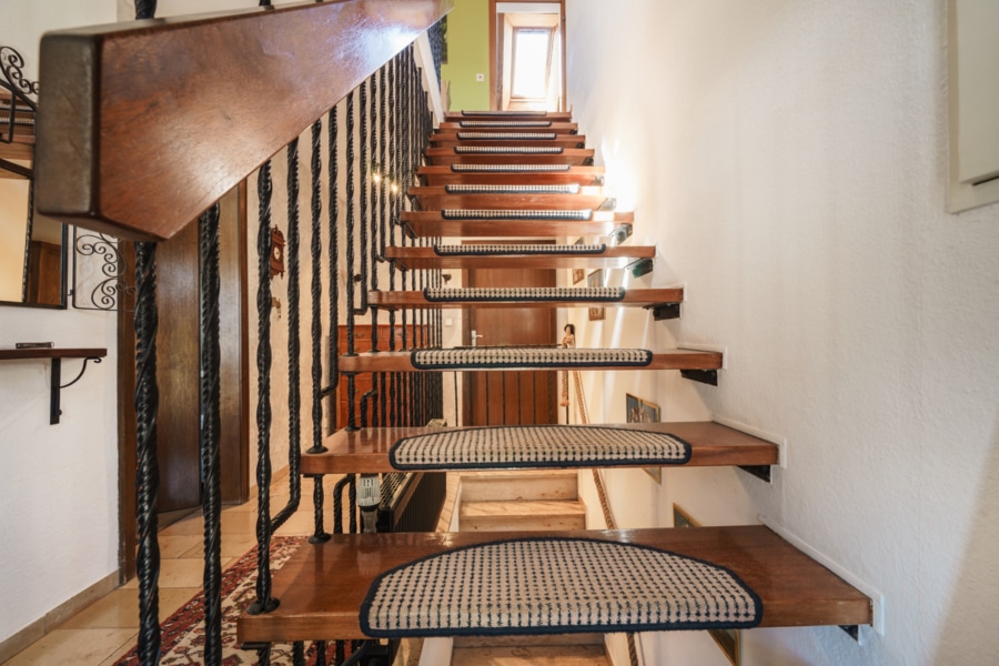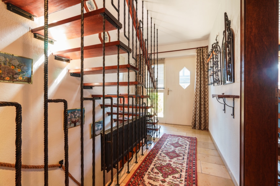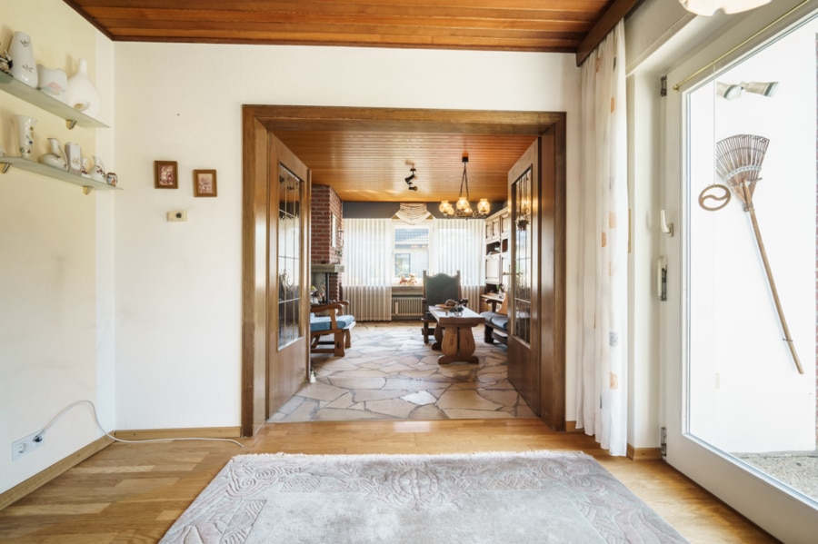 Im Inneren des Hauses erwartet Sie eine klassische Raumaufteilung mit großzügigen Wohn- und Schlafbereichen, die viel Gestaltungsfreiheit ermöglichen. Große Fensterflächen sorgen für eine helle und freundliche Atmosphäre in allen Räumen. Teilweise sind die Fenster mit Jalousien ausgestattet, die sowohl Sicht- als auch Sonnenschutz bieten.