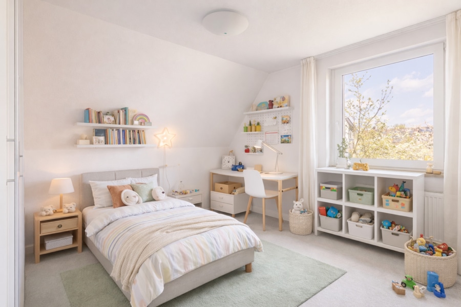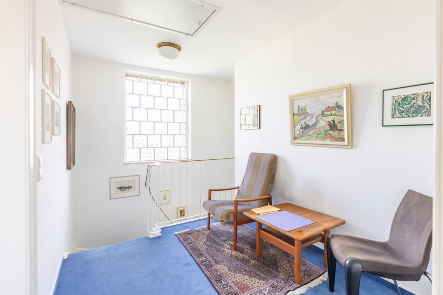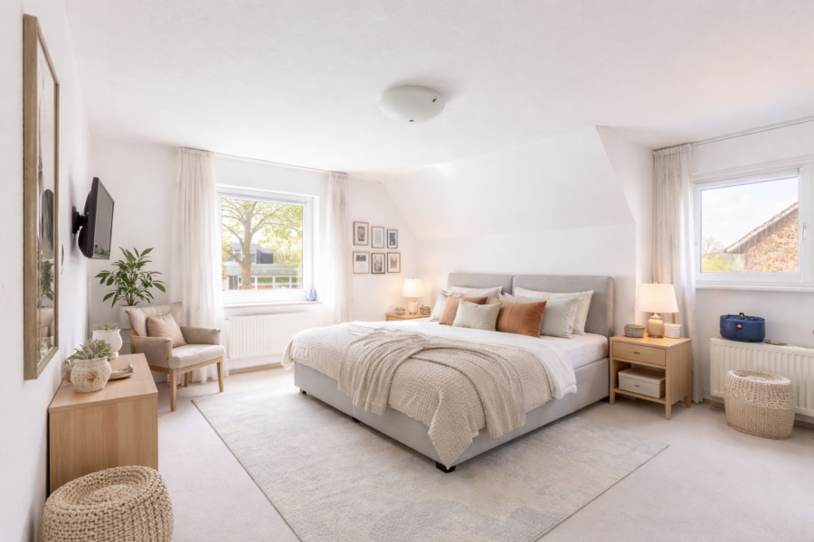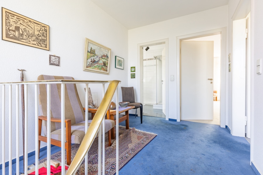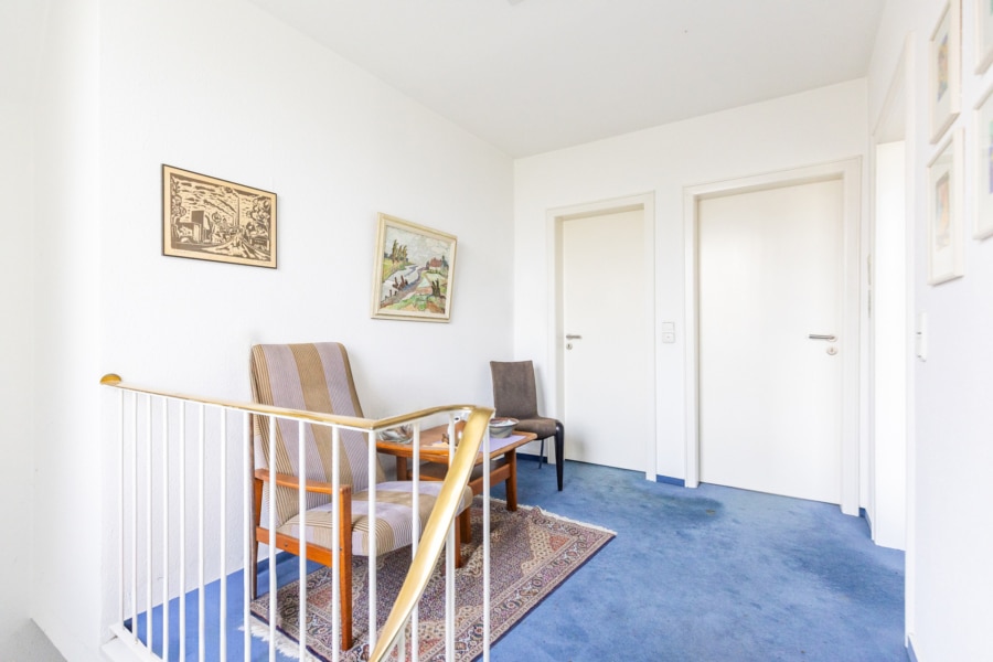 Das Obergeschoss dient als privater Rückzugsbereich und überzeugt durch eine klare und funktionale Raumaufteilung. Die vorhandenen Schlafräume bieten vielfältige Nutzungsmöglichkeiten und ausreichend Platz für individuelle Wohnkonzepte. Besonders hervorzuheben ist, dass eines der Schlafzimmer über ein direkt angrenzendes weiteres Zimmer verfügt, das sich ideal als Ankleidezimmer oder alternativ als Büro nutzen lässt und somit zusätzlichen Komfort sowie flexible Nutzungsmöglichkeiten bietet.