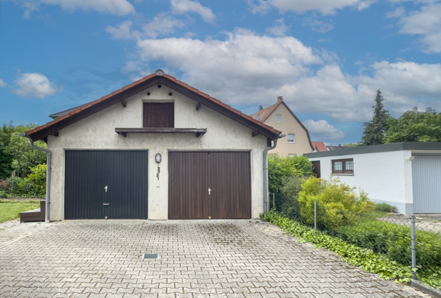 •Doppelgarage mit zusätzlichem Stauraum im Spitzdach