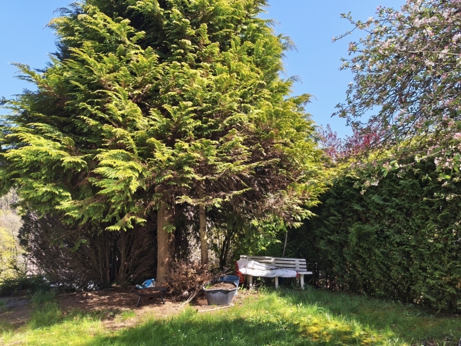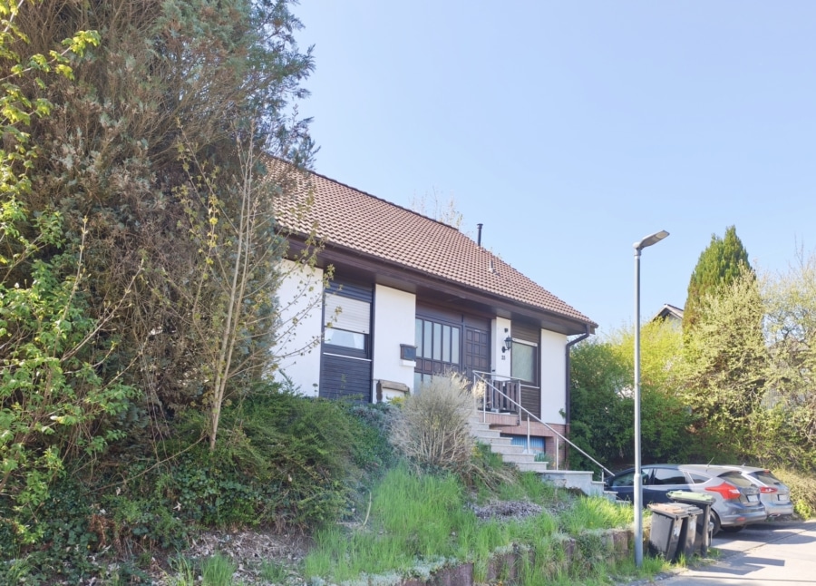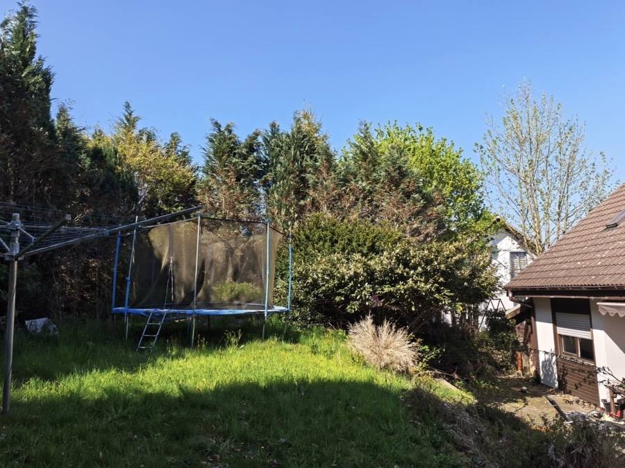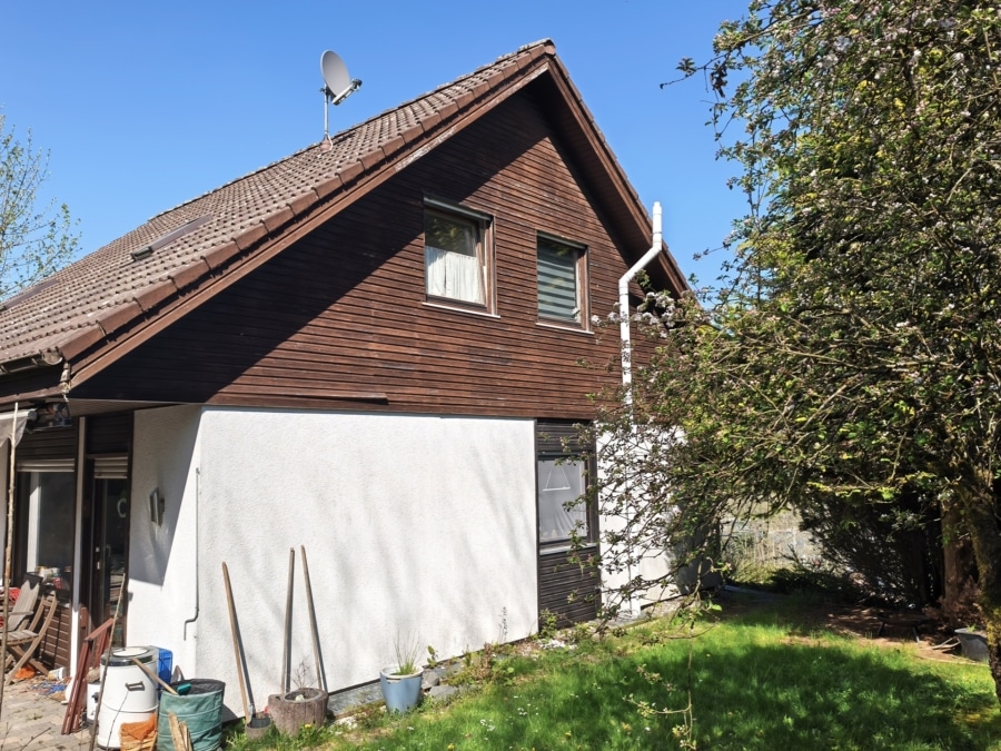 Das 625 m² große Grundstück mit Terrasse in Südwestausrichtung bietet Erholung im Grünen. Das Dach ist teilisoliert und der Spitzboden dient als zusätzlicher Stauraum. Das Garagentor wird manuell bedient. Die Drainage rund ums Haus wurde bereits in 2000 erneuert. Glasfaseranschluss ist seit 2025 verlegt.