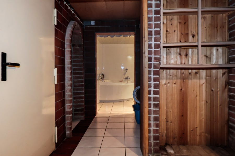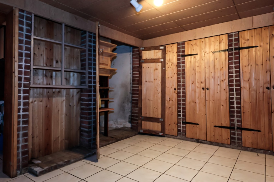Der über die Küche zugängliche Keller ist weit mehr als reine Nutzfläche: Hier wartet Ihr ganz persönlicher Wellnessbereich! Eine Eckbadewanne mit Whirlpoolfunktion, Dusche, Marmorwaschbecken sowie eine Sauna mit Tauchbecken schaffen den perfekten Ort zum Abschalten. Ergänzt wird das Untergeschoss durch einen großen Kellerraum mit Einbauschränken, den Heizungsraum mit Öltanklager, eine Waschküche und eine Werkstatt mit eigenem WC – ein Paradies für Heimwerker.