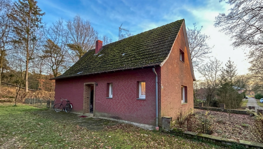 Am Ende einer idyllischen, landschaftlich geprägten Straße befindet sich dieses charmante Wohnhaus in besonderer Lage – direkt angrenzend an ein Waldgebiet.