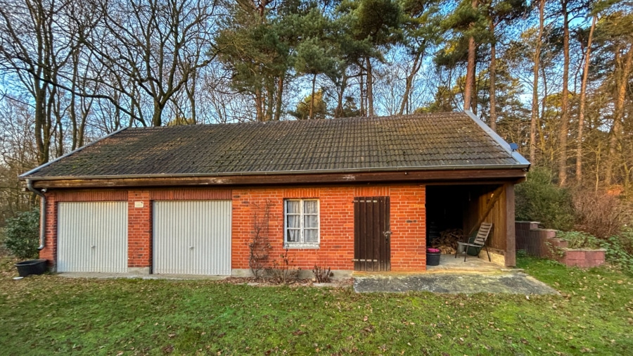 Zum Objekt gehören zwei Garagen sowie ein massiv angebauter Schuppen – das Dach der Garagen und des Schuppens wurde bereits erneuert. Besonders schön ist der nachträglich errichtete Freisitz: ein geschützter Platz für entspannte Stunden im Grünen – mit Waldnähe und angenehmer Nachbarschaft.