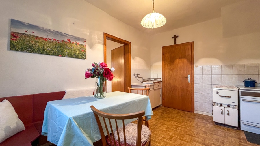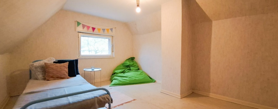 Das Wohnhaus stammt aus 1961, ist teilunterkellert und verfügt über eine Wohnfläche von ca. 86 m². Im Erdgeschoss befinden sich zwei Zimmer, Küche und Bad und im Dachgeschoss stehen Ihnen drei weitere Zimmer zur Verfügung. Die Immobilie ist renovierungsbedürftig, bietet dafür aber genau das, was viele suchen: Charme, Ruhe und die Möglichkeit, etwas Eigenes daraus zu machen.