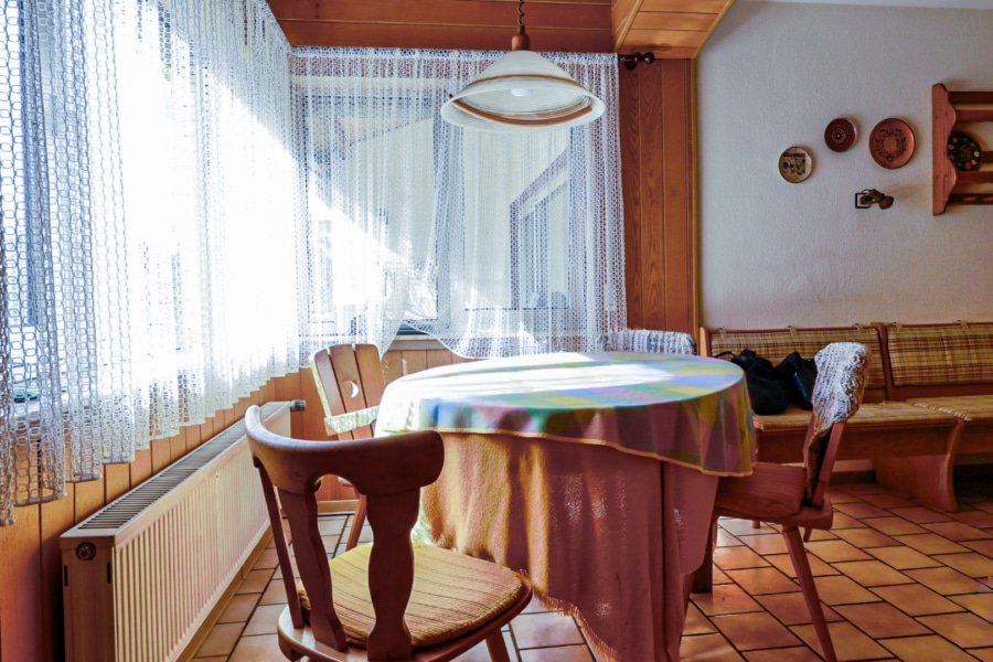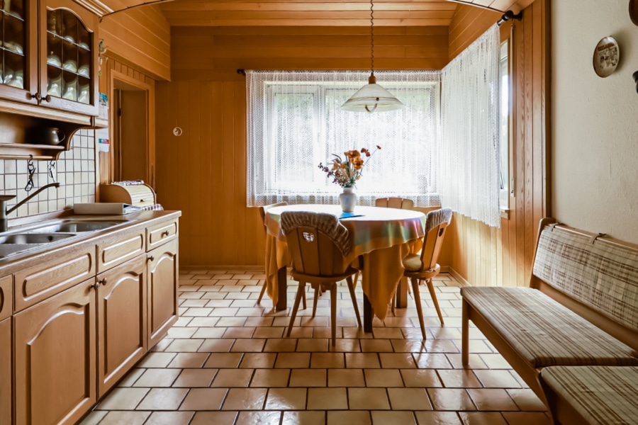 Die Küche ist funktional geschnitten und wurde kürzlich mit neuen Elektrogeräten ausgestattet. Der angrenzende Wintergarten schafft zusätzlichen Raum und lädt auch bei kühlerem Wetter zum Verweilen ein.