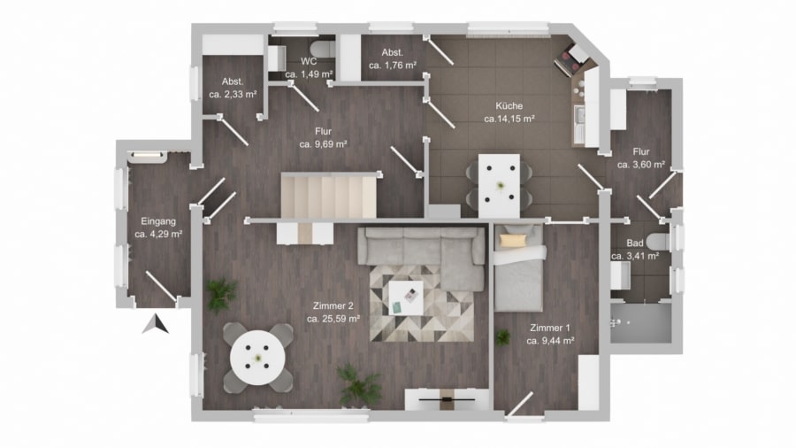 - Wohn-/Esszimmer mit viel Platz