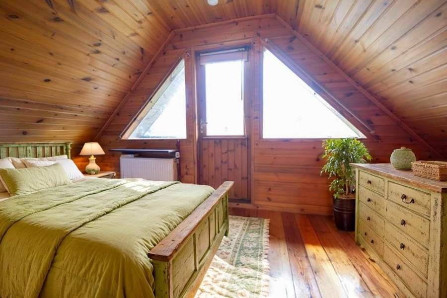 Im Obergeschoss warten zwei gemütliche Schlafzimmer, eine zusätzliche Toilette sowie zwei Balkone, die zusätzliche Rückzugsorte im Freien bieten.