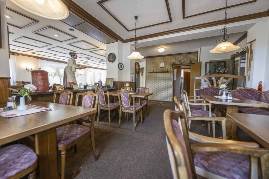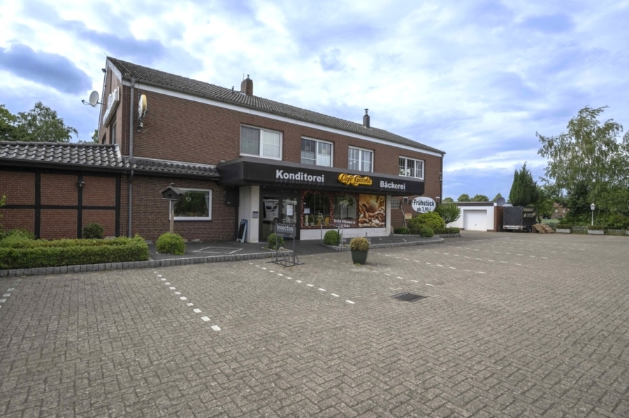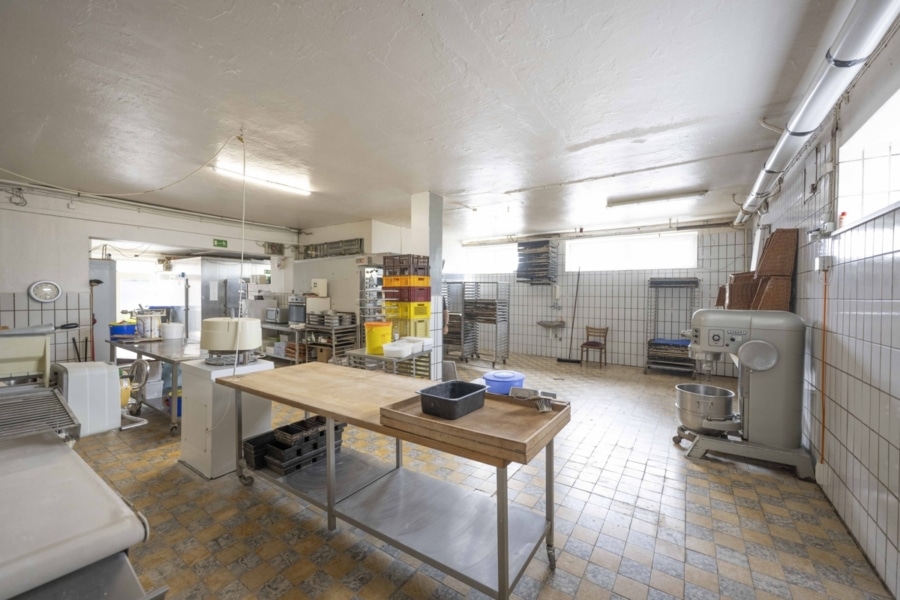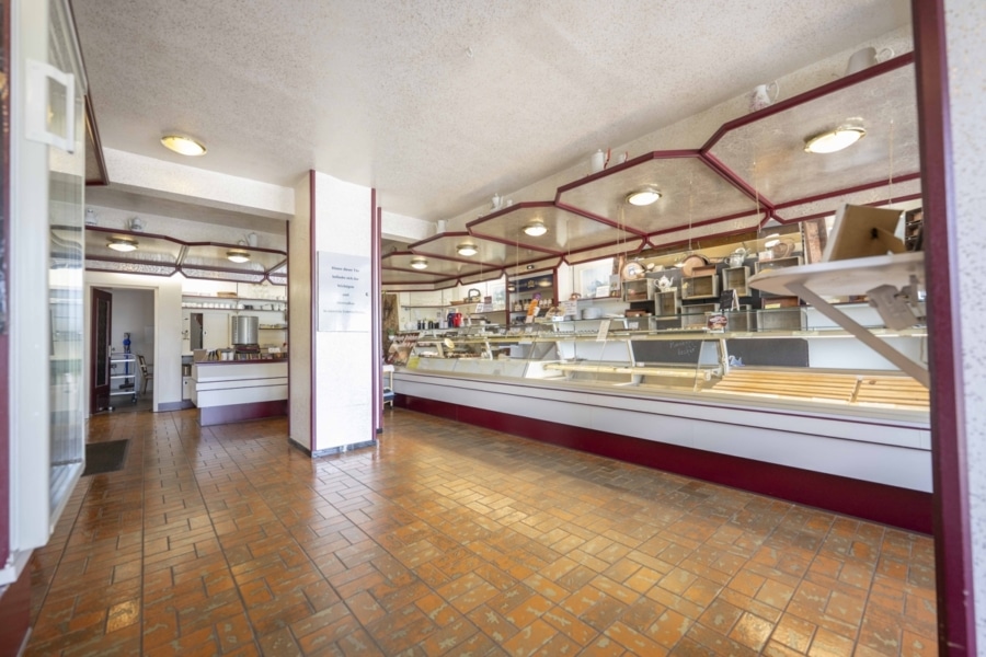 Die ca. 320 m² große Gewerbefläche beherbergt eine etablierte, familiengeführte Bäckerei mit Verkaufsraum, voll ausgestatteter Backstube, Lager, Sanitäranlagen und einem beliebten Cafébereich mit Bestuhlung im Innen- und Außenbereich.