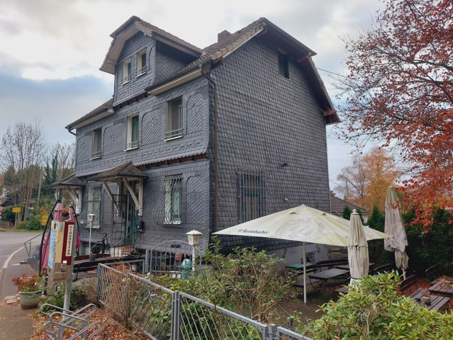 Direkt an der beliebten B478, eingebettet im idyllischen Nümbrecht, erwartet Sie ein echtes Unikat: Diese liebevoll erhaltene und voll ausgestattete Immobilie in einem ehemaligem Bahnhofsgebäude aus Fachwerk vereint Gastronomiebetrieb und Wohnen unter einem Dach – ideal für alle, die ihren Traum von der Selbstständigkeit verwirklichen wollen.