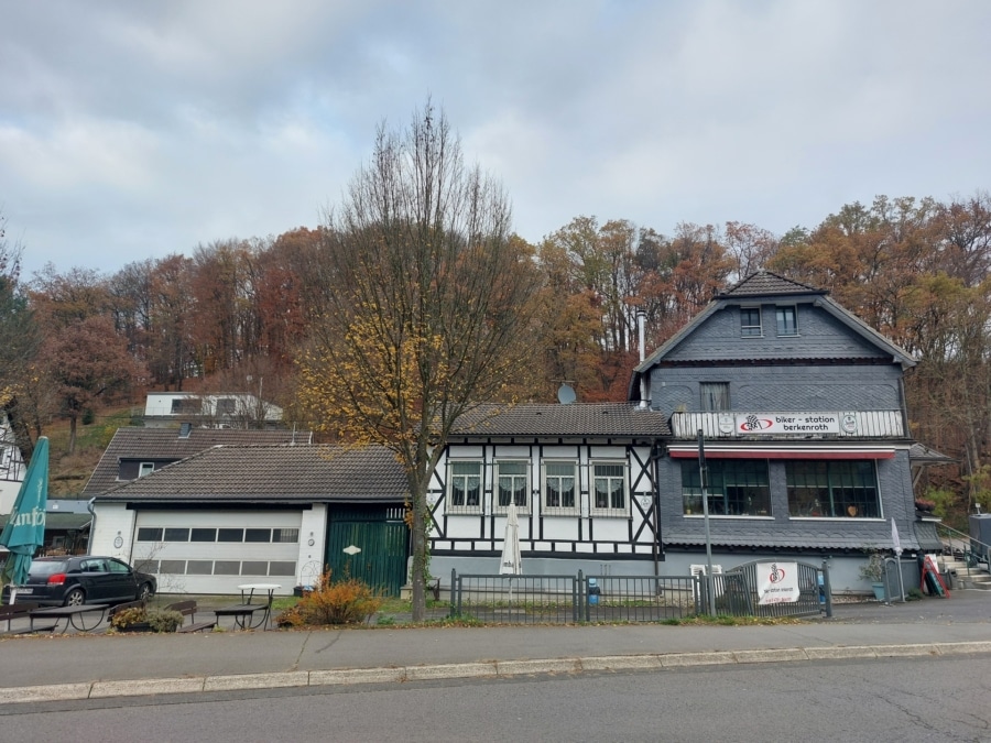 Die Immobilie befindet sich in einem Ortsteil der Gemeinde Nümbrecht im Oberbergischen Kreis – eine Region, die für ihre naturnahe Umgebung, sanften Hügel und ihren Erholungswert geschätzt wird. Die Lage direkt an der Bundesstraße B478 macht das Objekt besonders attraktiv für Tagesausflügler, Motorradfahrer und Radreisende, die gezielt Gaststätten entlang beliebter Routen ansteuern.