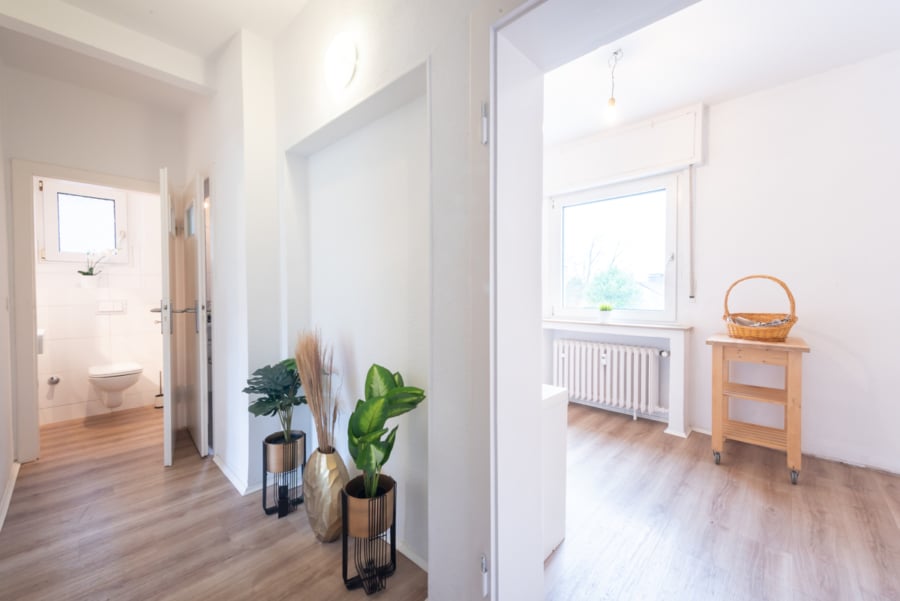 Wir weisen darauf hin, dass die Bilder der Wohnungen im 1. Obergeschoss und 2. Obergeschoss/Dachgeschoss aus dem Jahr 2021 stammen, als die Wohnungen zur Neuvermietung anstanden. Aus Gründen der Privatsphäre wurde auf das Anfertigen neuer Innenaufnahmen dieser beiden Wohnungen verzichtet.