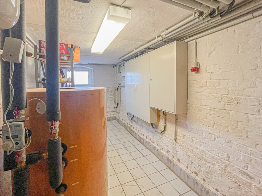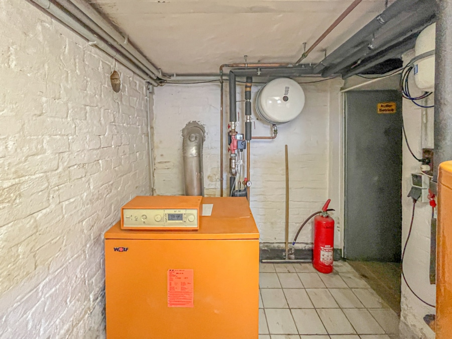 Das Grundstück umfasst 14 Parkplätze, von denen 7 bereits an die Mieter vermietet sind. Die restlichen 7 Parkplätze können für ca. 25 € monatlich extern vermietet werden, was zusätzliche Einnahmen generieren könnte. Starkstromanschlüsse sind vorhanden um Ladestationen für E-Autos zu installieren. Kabelfernsehen und Glasfaser ist ebenfalls vorhanden. Das Gebäude wird durch eine Gasheizung beheizt, die im Jahr 1999 installiert wurde und deren Brenner aus dem Jahr 2013 stammt. Das Gebäude ist vollständig unterkellert und bietet den Mietern Kellerabteile, einen Trockenraum sowie einen Fahrradabstellraum und einen Technikraum.