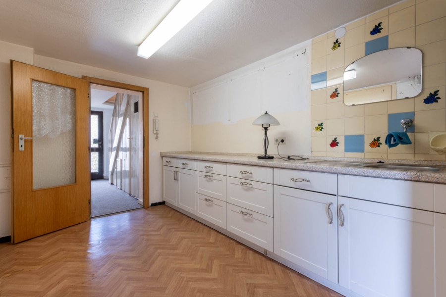Positiv hervorzuheben sind das neue Dach (2024), der genehmigte Anbau von 1965, teilweise modernisierte Fenster sowie eine teils erneuerte Elektrik (2007). Die Gasheizung stammt aus ca. 1985 und ist erneuerungsbedürftig. Eine Garage ist nicht vorhanden, dafür bestehen vor dem Haus zahlreiche öffentliche Stellplätze.