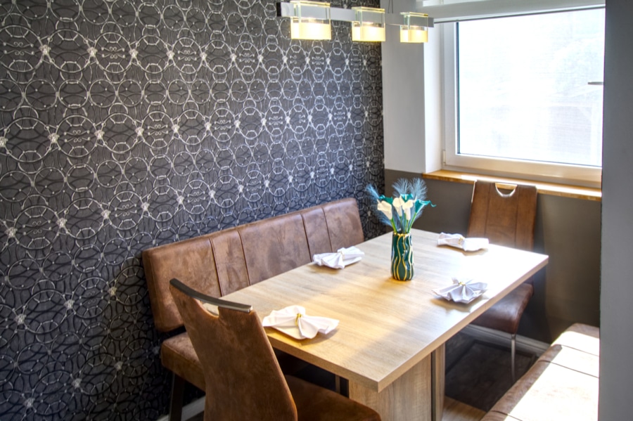 Das Haus gehört zu einer gepflegten WEG. Die tatsächliche Wohnfläche von ca. 70 m² verteilen sich auf drei helle Zimmer. Im Erdgeschoss erwartet Sie eine stilvolle Hochglanzküche in Beige mit Siemens-Einbaugeräten, Kochinsel und großzügiger Durchreiche zum separaten Essbereich – ein echtes Highlight für Kochbegeisterte.