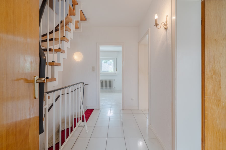 Im Obergeschoss erwarten Sie mehrere Räume zur freien Nutzung – etwa als Schlafzimmer, Kinderzimmer oder Büro. Vom oberen Stockwerk aus betreten Sie auch den Balkon. Das Hauptbadezimmer mit Badewanne wurde 2006 renoviert. Zusätzlich steht im Keller eine praktische Dusche zur Verfügung – ideal z. B. nach dem Sport oder der Gartenarbeit.