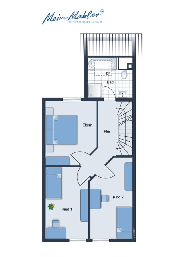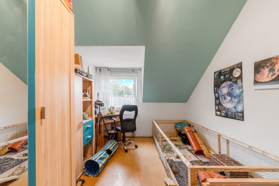 Im Erdgeschoss erwarten Sie ein großzügiges Wohnzimmer mit Essbereich und Zugang zur sonnigen Süd-Terrasse, eine separate Küche, ein Gäste-WC sowie ein Abstellraum. Das Obergeschoss bietet drei gut geschnittene Schlafzimmer und ein Tageslichtbad – alles im gepflegten Originalzustand.