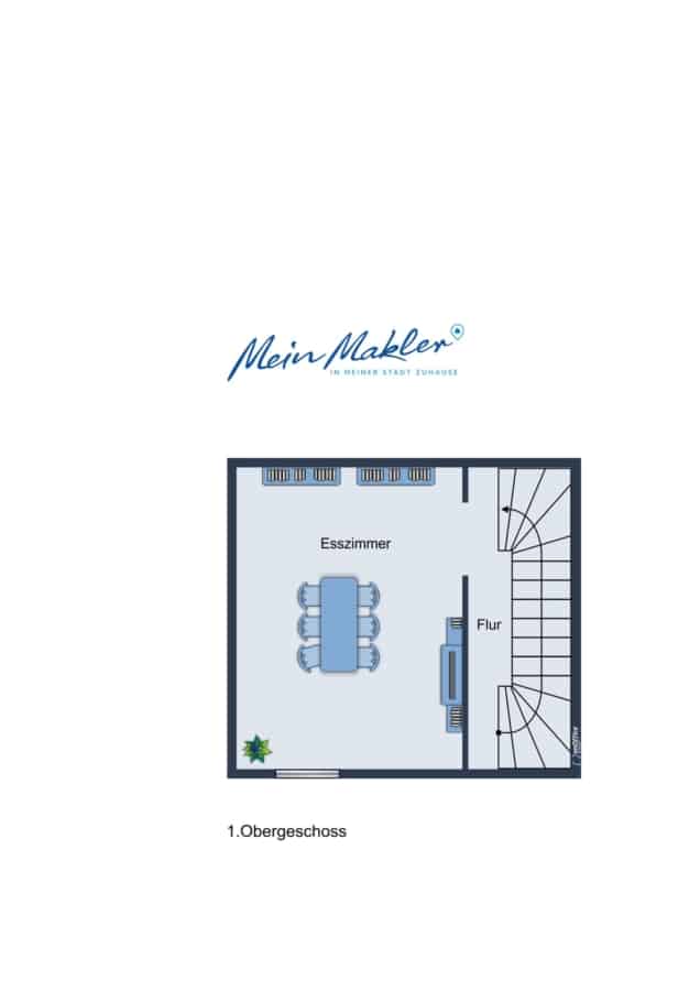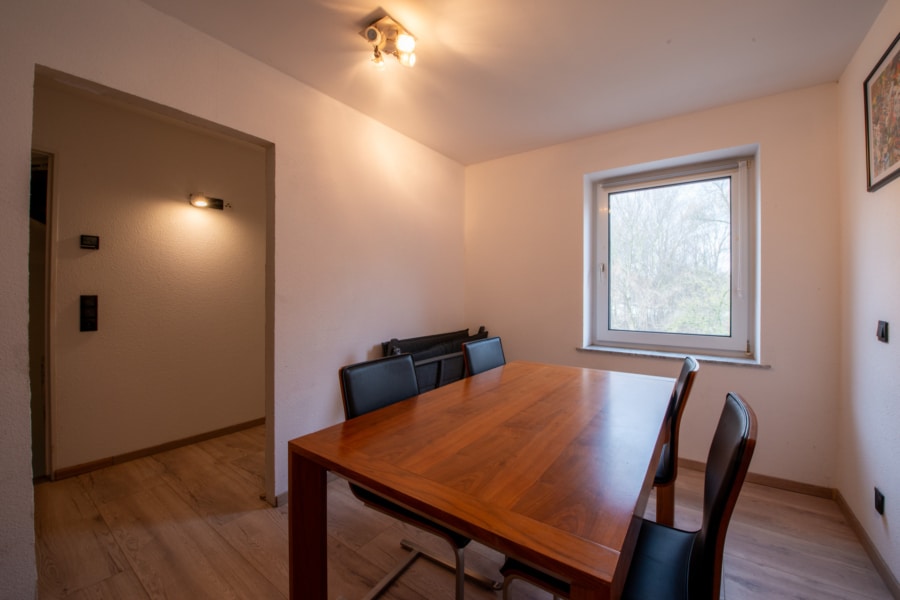 Im 1. Obergeschoss befindet sich ein weiterer Raum, der aktuell als Esszimmer genutzt wird. Dieser eignet sich ebenso ideal als Kinderzimmer, Homeoffice oder Gästezimmer.