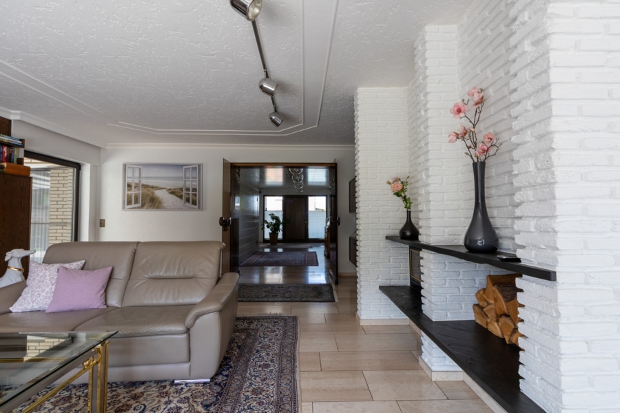 Ein besonderes Highlight ist die großzügige Einbauküche, die keine Wünsche offenlässt, sowie der gemütliche Kamin, der zu entspannten Stunden einlädt. Die südwestlich ausgerichtete Terrasse lädt dazu ein, den Tag bei Sonnenschein ausklingen zu lassen.