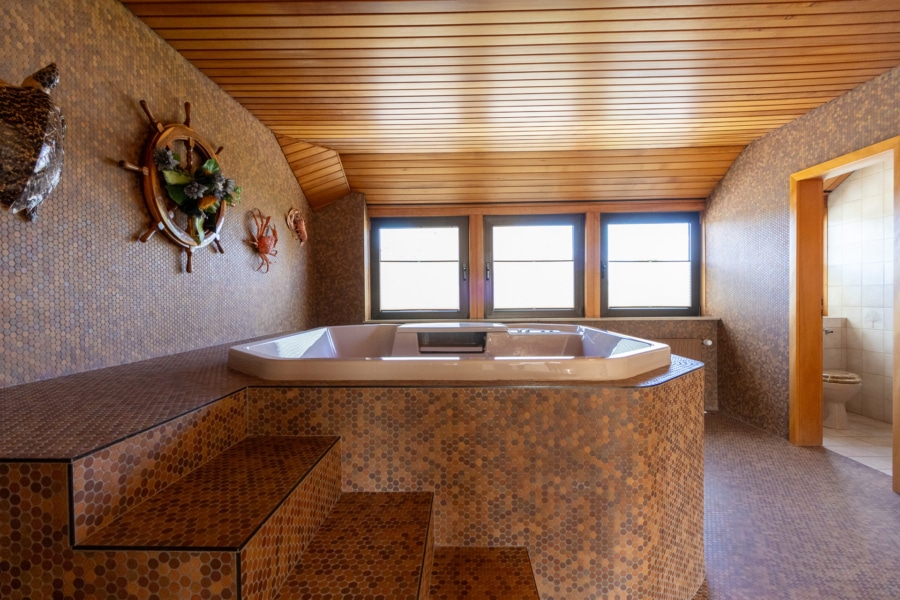Für Ihre Fahrzeuge stehen eine Doppelgarage und ein Carport bereit. Sportbegeisterte kommen im Fitnessbereich voll auf ihre Kosten, und die Sauna sowie der Whirlpool versprechen Erholung pur in den eigenen vier Wänden.