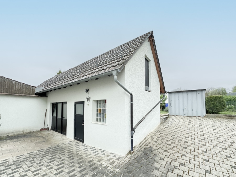 Neben dem Haupthaus bietet das separate Nebengebäude vielseitige Nutzungsmöglichkeiten – ob als Werkstatt, Atelier oder zusätzlicher Stauraum. Zwei Einzelgaragen komplettieren das attraktive Gesamtangebot und sorgen für bequemes Parken sowie zusätzlichen Platz für Fahrräder oder Gartengeräte.