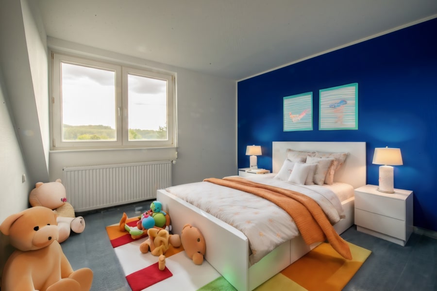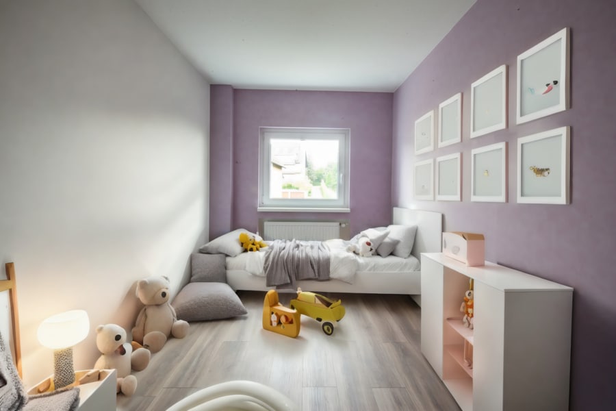 Die zweite Wohneinheit erstreckt sich über das Ober- und Dachgeschoss. Hier kommen besonders Liebhaber großzügigen Wohnens auf ihre Kosten. Das 1. Obergeschoss umfasst ein im Jahr 2024 aufwendig saniertes Tageslichtbad mit barrierearmer Dusche, ein gut geschnittenes Kinder- oder Arbeitszimmer sowie einen lichtdurchfluteten Wohn- und Essbereich mit Panoramafenster. Von hier aus gelangen Sie in ein weiteres Zimmer, das sich flexibel nutzen lässt – z. B. als Gäste-, Arbeits- oder Hobbyraum.