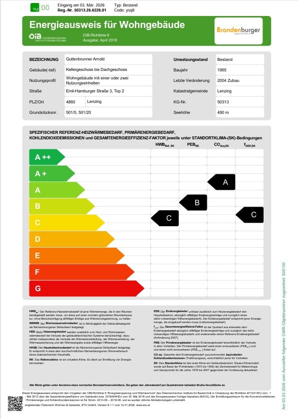 Sehr gute Energieeffizienz (HWB 51,1 – B)