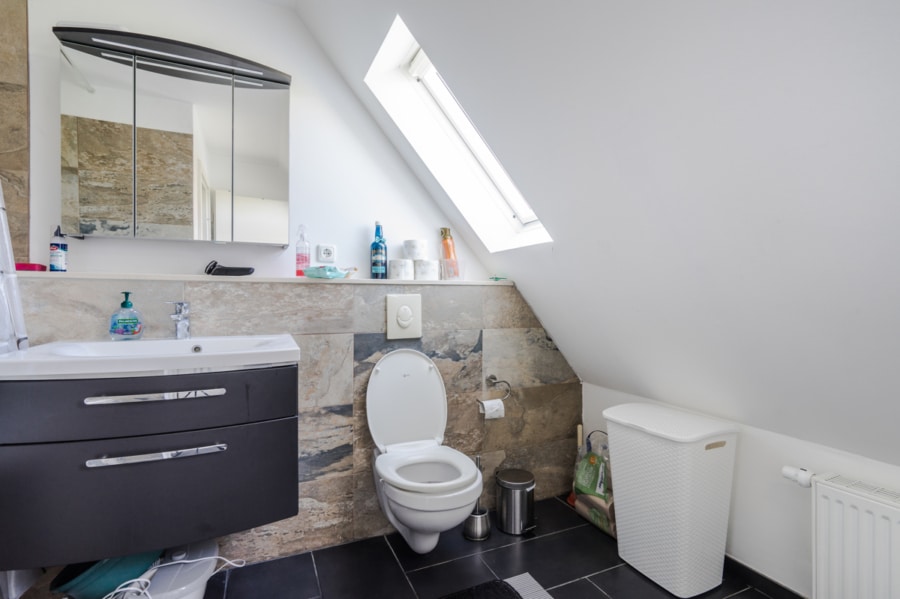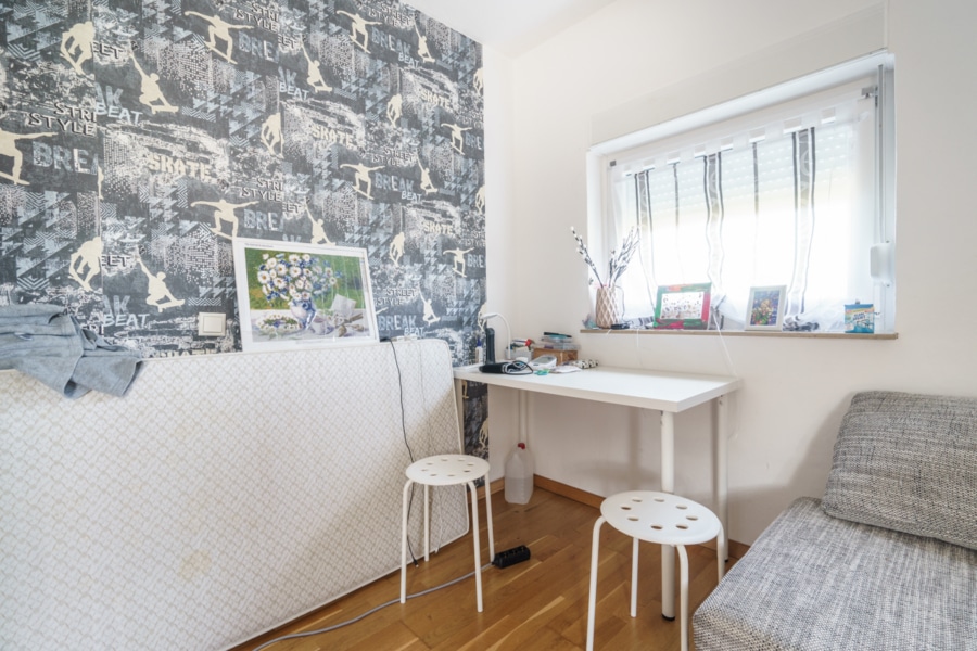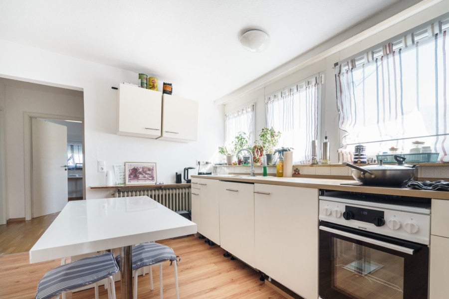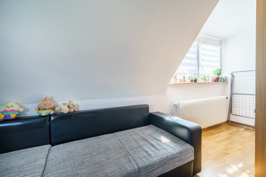 Im Dachgeschoss befindet sich eine ebenfalls großzügig geschnittene Drei-Zimmer-Wohnung, die aktuell vermietet ist. Sie bietet einen gepflegten Zustand, einen schönen Balkon mit Ausblick ins Grüne sowie eine helle, gemütliche Wohnatmosphäre. Die Mieterstruktur spricht für ein solides Mietverhältnis, was die Immobilie auch für Kapitalanleger besonders interessant macht.