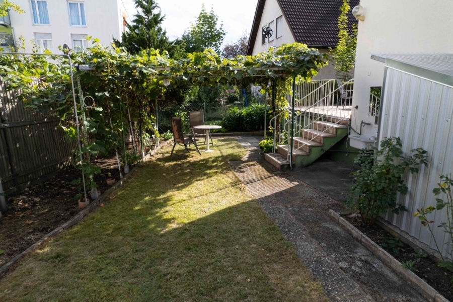 Das 520 m² große Grundstück liegt in ruhiger Lage in zweiter Reihe – abgeschirmt vom Verkehr, aber dennoch optimal angebunden. Der liebevoll gestaltete Garten bietet viel Raum für Spiel, Entspannung oder kreative Gartengestaltung.