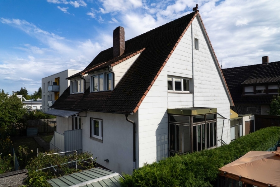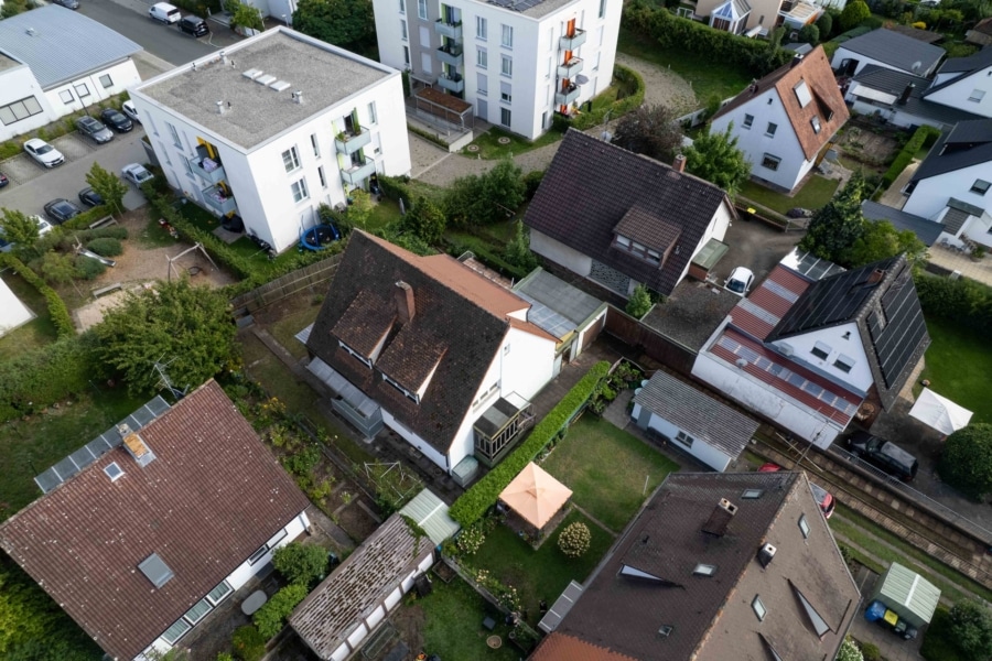 Die unmittelbare Umgebung ist geprägt von gepflegter Einfamilienhausbebauung und kleinen Mehrfamilienhäusern. Die Nachbarschaft gilt als familienfreundlich und gut angebunden – eine seltene Kombination, die sowohl für Familien als auch für Paare oder Investoren interessant ist.