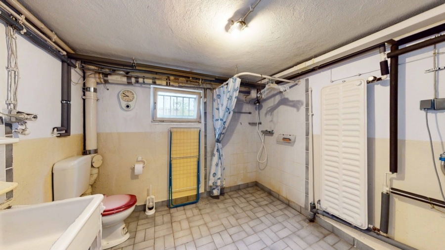 sowie ein Badezimmer mit Dusche und WC – ebenfalls im Keller.